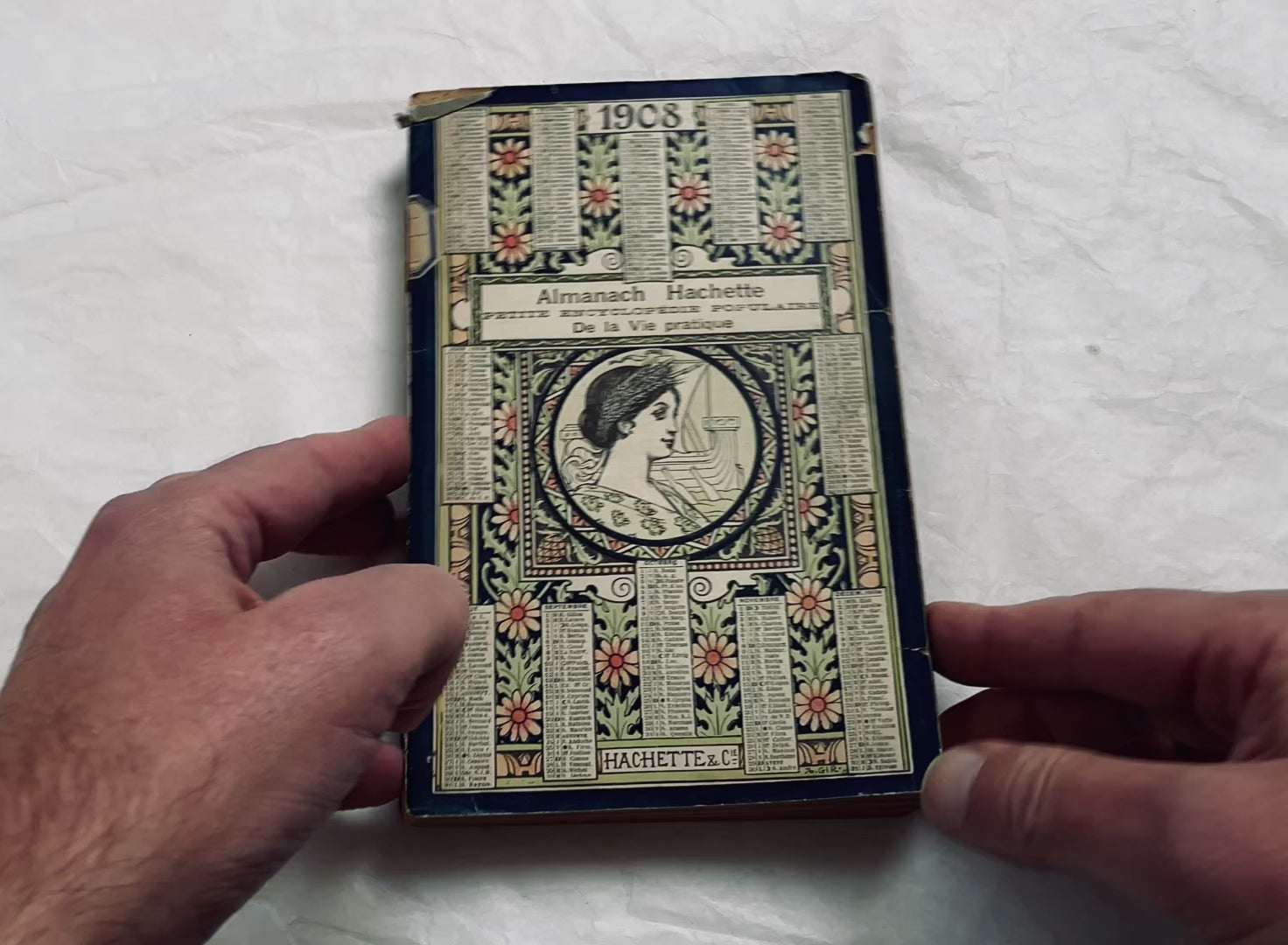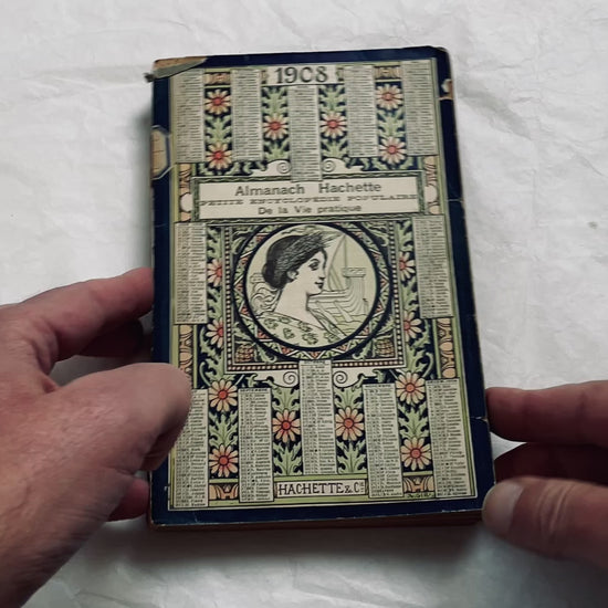 An original Hachette Almanach, published in Paris in 1908 — a beautifully illustrated and richly documented annual encyclopedia of daily life in France. This edition was both a practical guide and a window into the world of its time, filled with articles, charts, engravings, maps, and scientific discoveries that reflected the spirit of the Belle Époque and the years leading to the First World War.