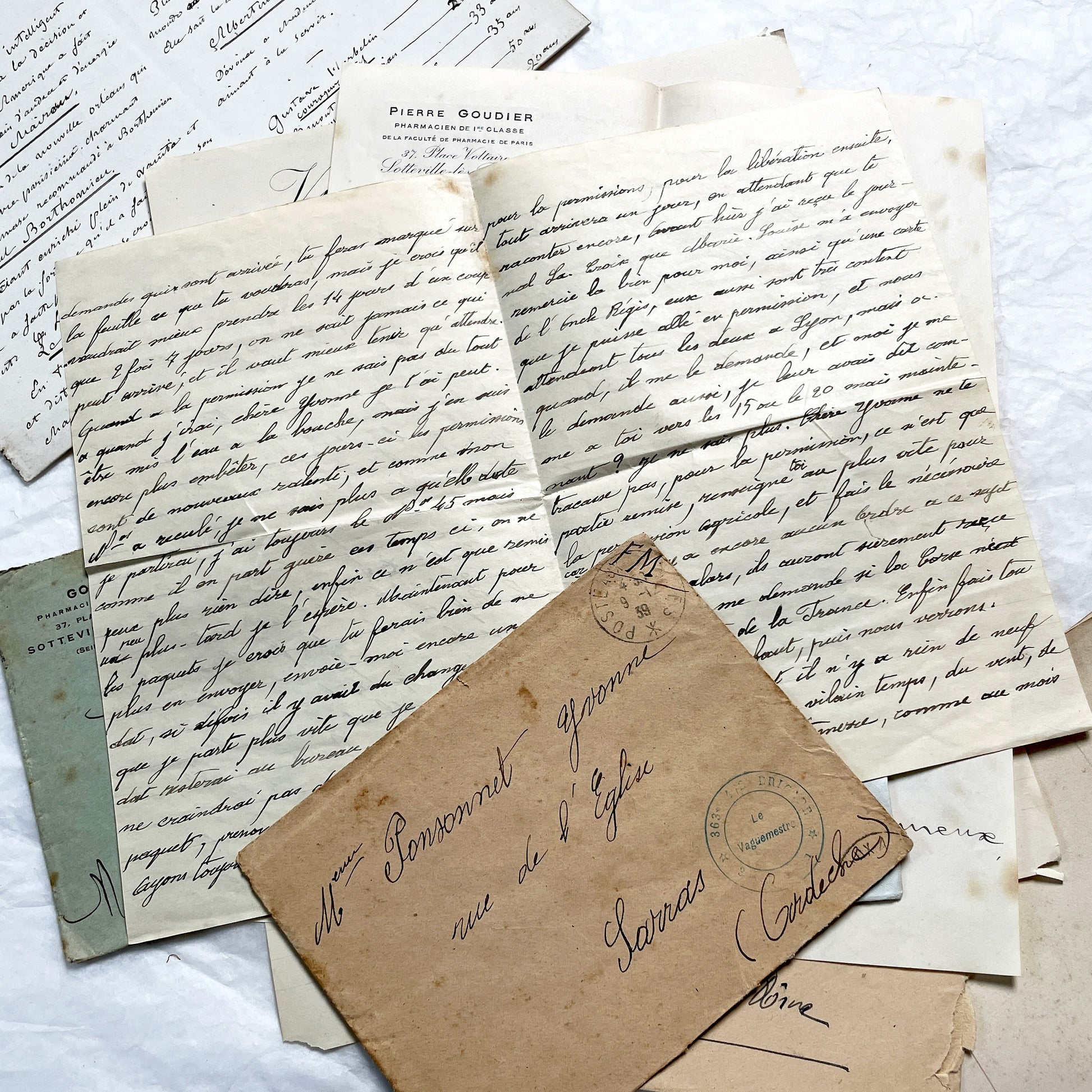 A unique lot of 10 authentic vintage French letters and envelopes dating from 1930s.