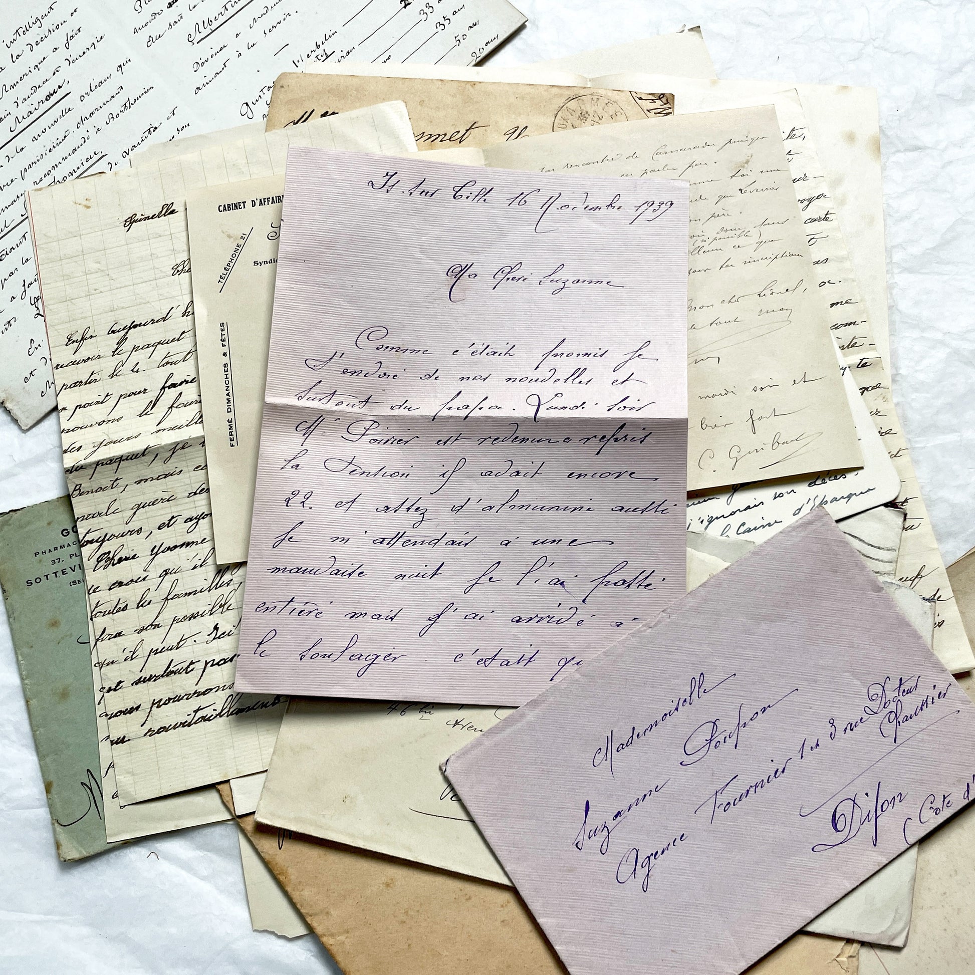 1930s - 10 French Letters with their Envelopes - Bundle of Antique French Letters and Envelopes – Handwritten 1930s Ephemera – Cursive Script, Ink, Mixed Paper Styles